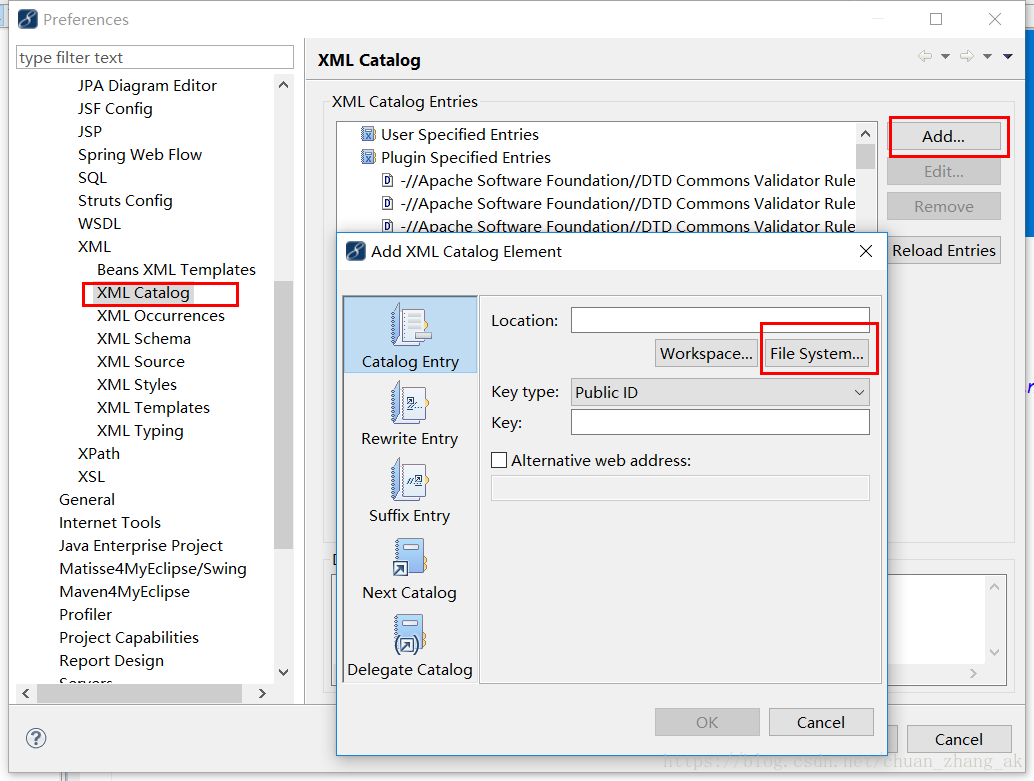 5、确认,然后选择key type为Schema location; 将复制过来的key粘贴到key中去,原来的是不正确的。