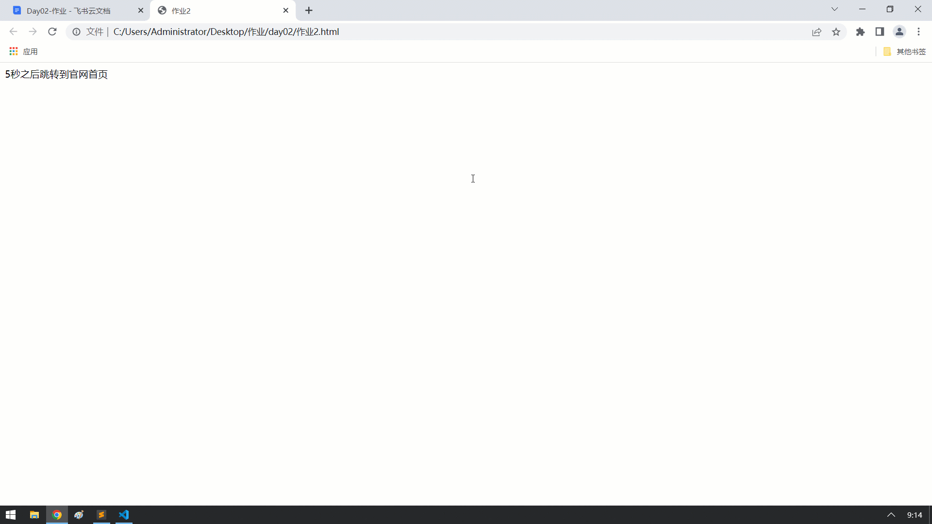 作业2:实现5秒倒计时之后,跳转到官网首页 【注意:需要实现倒计时功能】