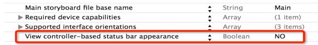 注意:想利用UIApplication来管理状态栏,首先得修改info.plist的设置
