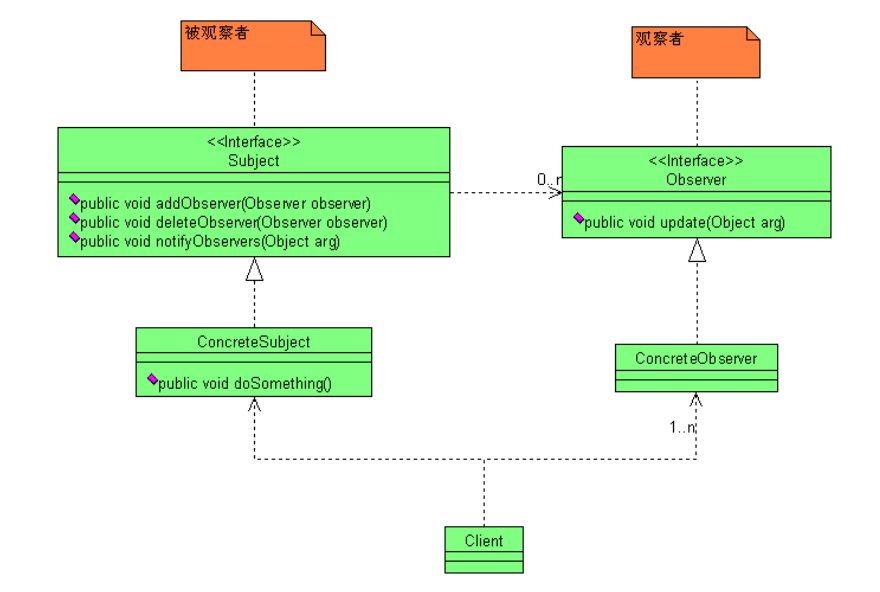 接口 Observer:一个可在观察者要得到 observable 对象更改通知时可实现Observer 接口的类。