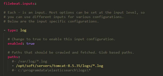 ③、修改filebeat的配置文件,让其解析某个目录下的所有日志文件到logstash中,如下