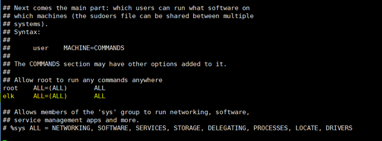 (四)、追加elk用户具有权限 vi /etc/sudoers