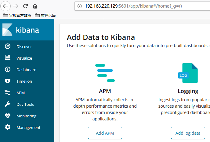 4、执行 ./kibana ,启动kibana,然后浏览器访问:http://192.168.220.129:5601