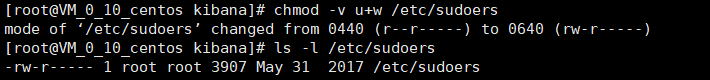 (三)、修改sudoers 文件具有可执行权限,并查看修改后权限修改sudoers文件