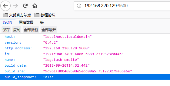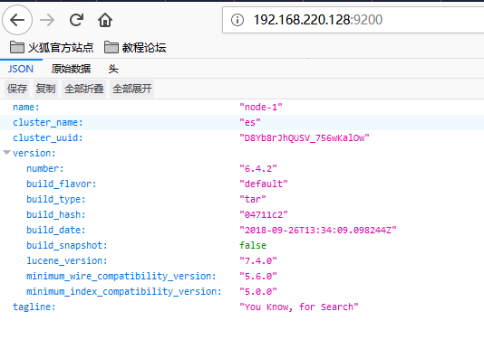 6、浏览器访问:http://192.168.220.128:9200检查是否启动成功。