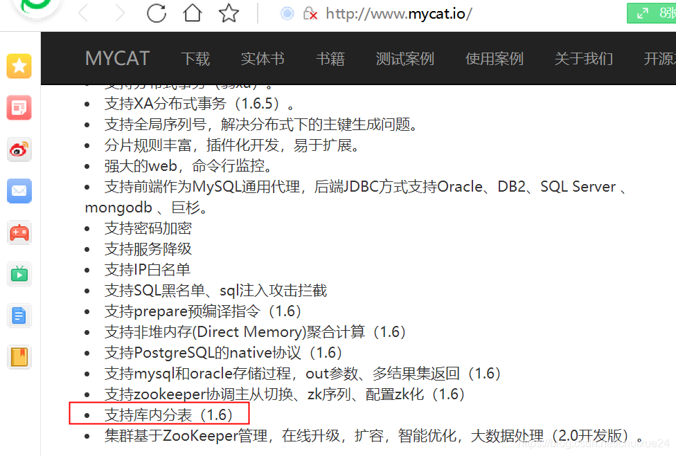 Mycat官方说明截图