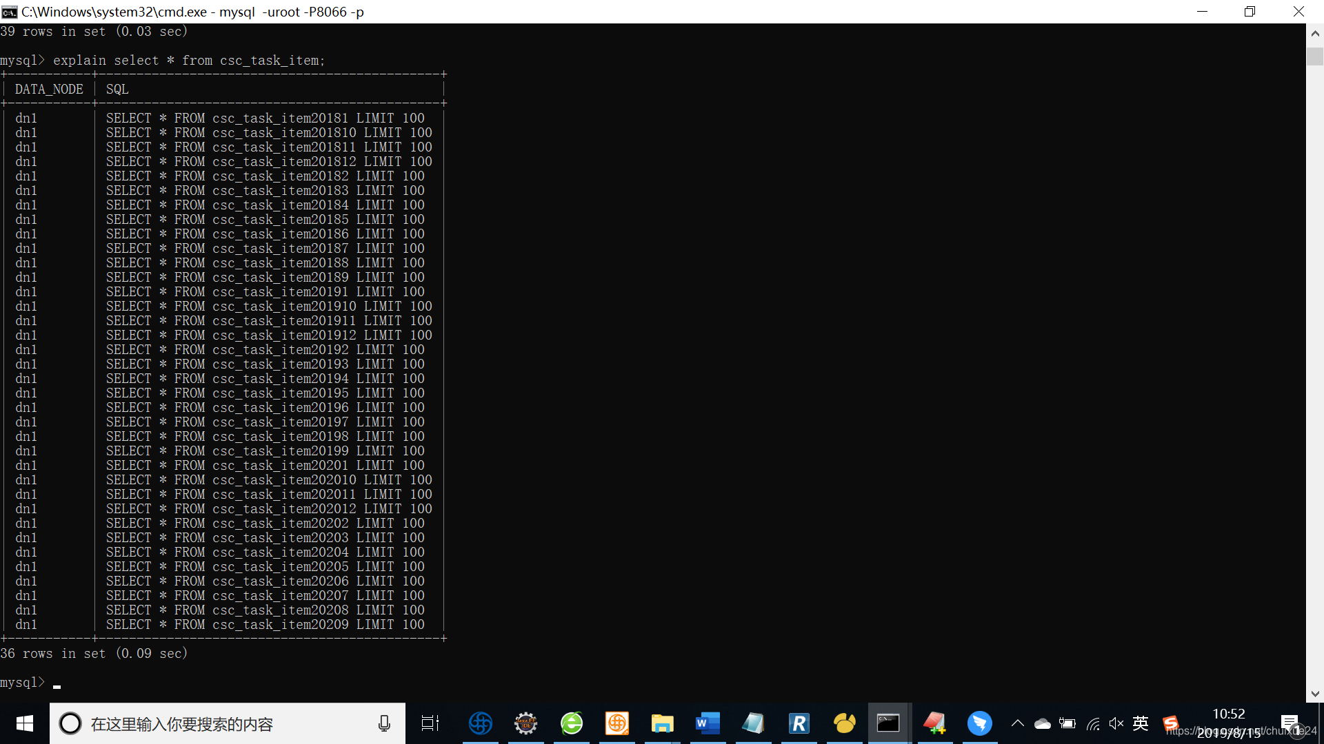 连上mycat,用explain查看相应sql的数据来自哪些表,以确定无误: