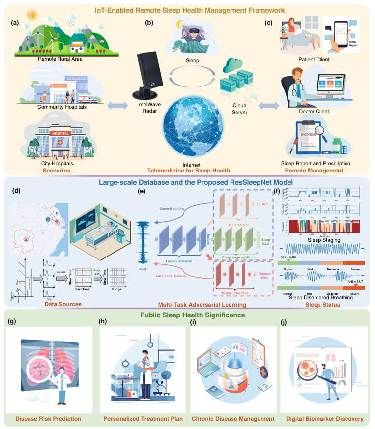 ResSleepNet实现了基于单一呼吸信号的睡眠分期与AHI估计,并通过迁移学习将其成功应用于雷达传感系统,构建了一套完整的非接触式远程睡眠健康管理平台。多维评估表明,该框架在不同年龄、性别、体重指数及常见合并症人群中均表现出良好的鲁棒性。尽管研究团队在模型泛化性与临床应用方面取得了显著进展,仍存在一些局限性与未来研究方向: