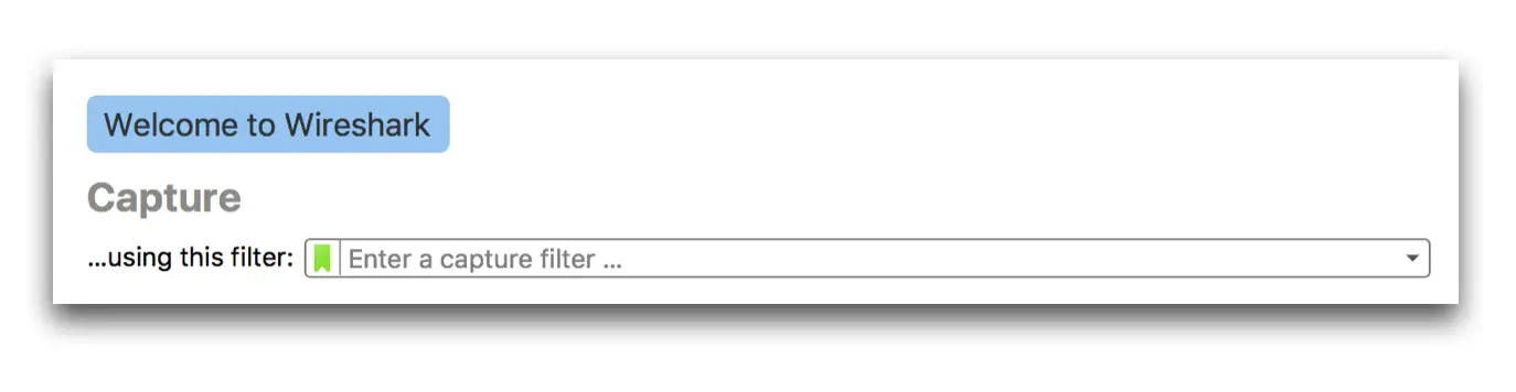 Capture Filter出现在初始界面,在网卡列表的上方有个输入框,允许我们输入capture filter,一旦输入了特定的capture规则,Wireshark就只捕获符合该规则的流量包了。