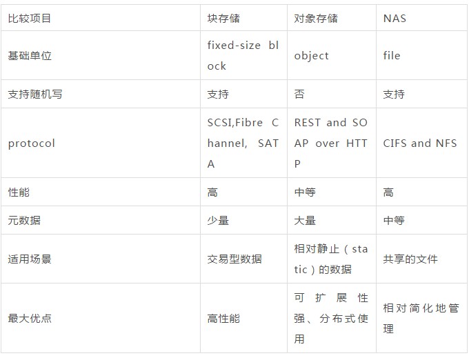 基于http协议 ws服务,接口简单,put/get,延时高。 EB级别存储方案,适合云上产品形态。深度目录树变成两层目录结构(bucket+object)。