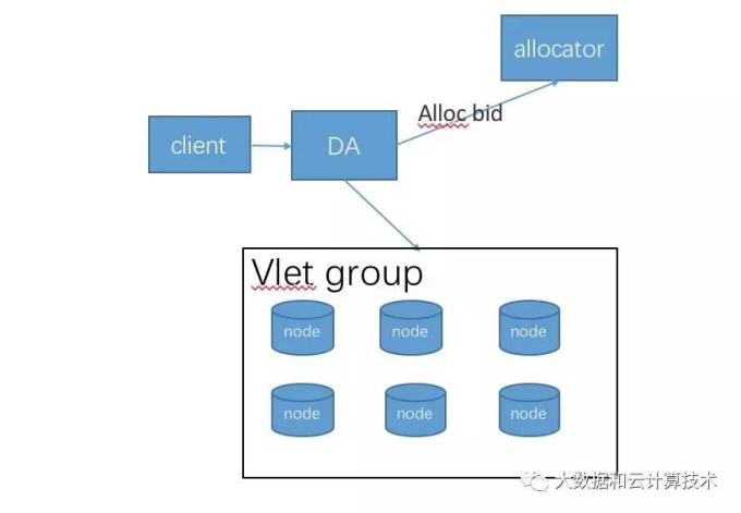 (3)客户端的代理继续向blobstorage申请一个全局的id,这个id代表了了后端实际node的地址,以及这个node管理的实际物理卷,我们的每个分片数据均等的存在这些物理卷上。