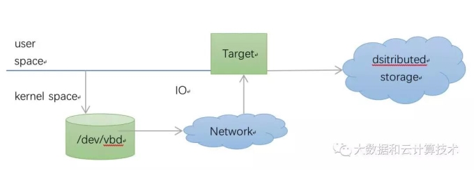 与后端交互的的部分在内核实现,后端target解析iscsi协议并将请求映射到后端分布式存储