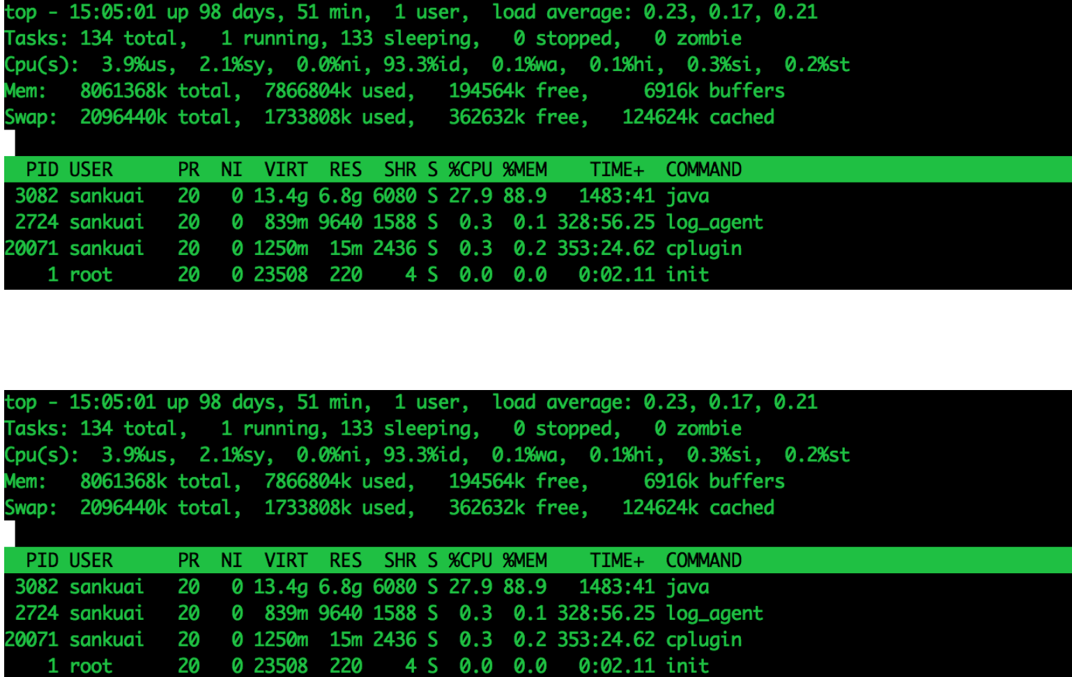 676 sankuai 20 0 839m 6568 1600 S 0.3 0.1 288:01.72 log_agent