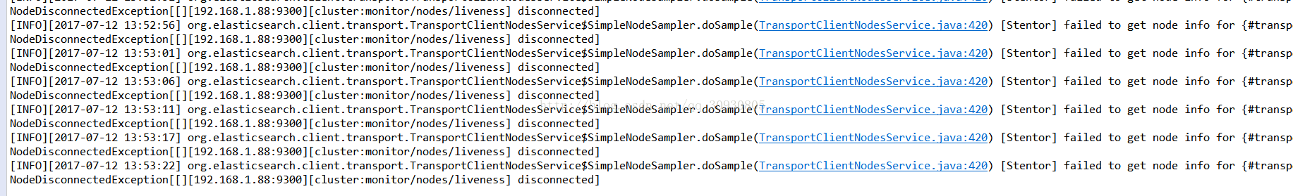 Spring连接Elasticsearch报错:NodeDisconnectedException[[][IP:9300][cluster:monitor/nodes/liveness] disc
