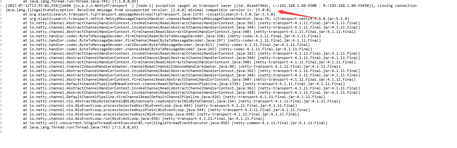 java.lang.IllegalStateException: Received message from unsupported version: [2.0.0] minimal compatible version is: [5.0.0]