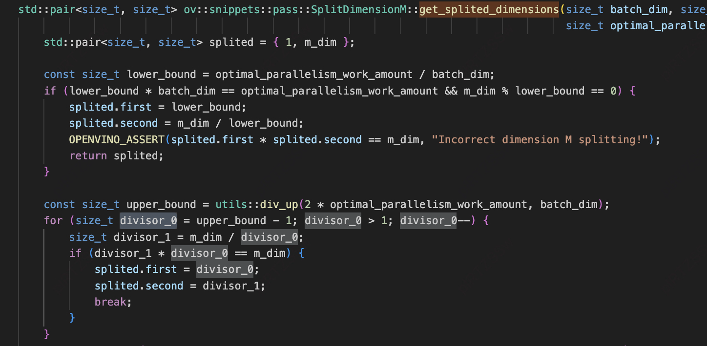 ov::snippets::pass::SplitDimensionM::split