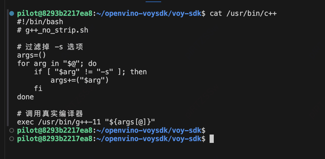 hack /usr/bin/c++ 命令,把这个命令改成自己的bash脚本,在其中过滤-s参数arg: