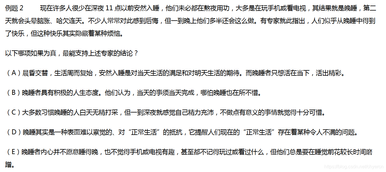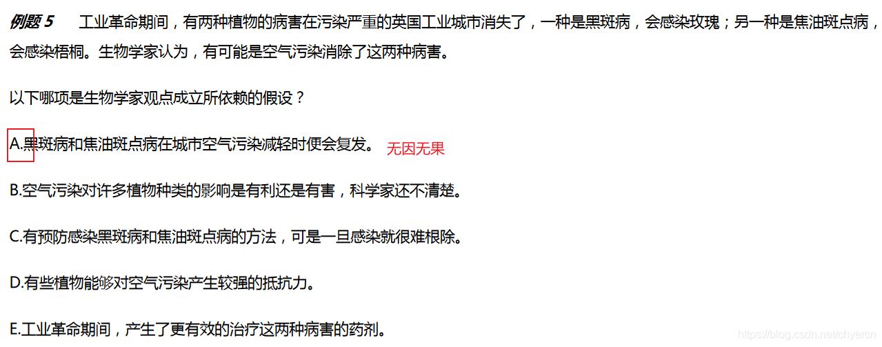 A 错因:只针对背景 C扩大了论证范围 D 只针对背景+转移话题 E 只针对背景