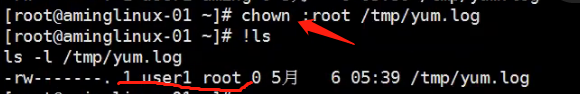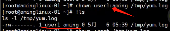 chown user1:aming /(该文件的路径) 中间加个“:”即可