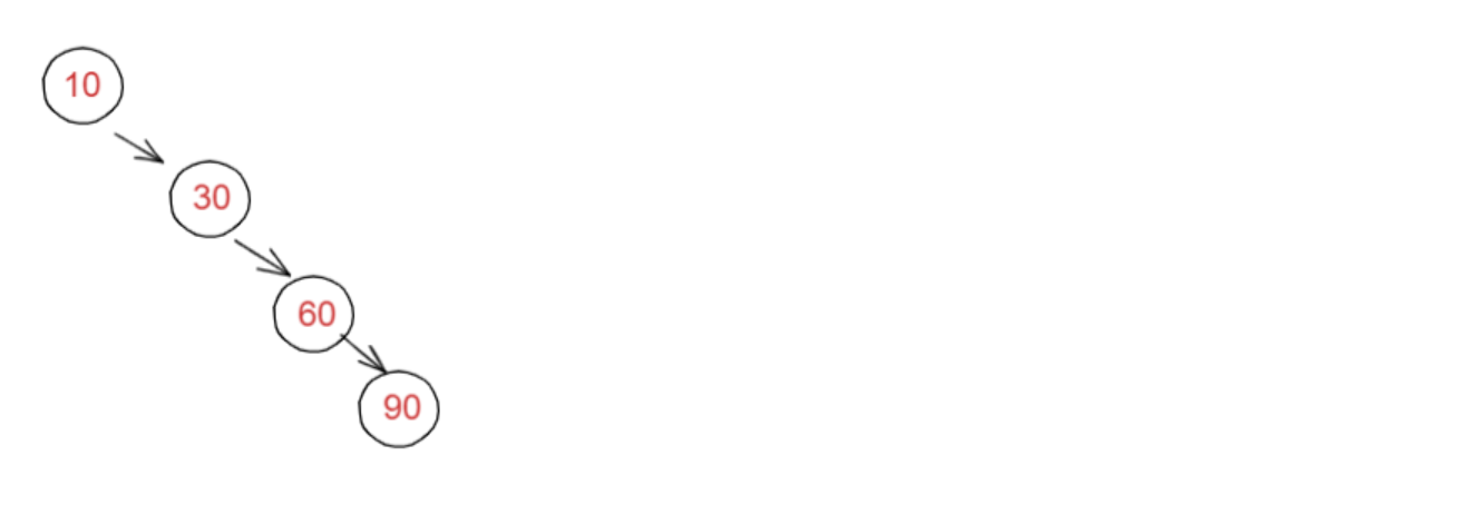 在极端的情况下,二分查找树可能会退化成为链表,我们会发现,如果我们要查找1这个元素,查找的效率依旧会很低。效率低的原因在于这个树并不平衡,全部是向左边分支,如果我们能够把这棵二分查找数进行调整让左右子树的高度相等,并且左右子树的结点数也趋近于相等,那么查找效率就会大大提高,我们可以将这棵树调整成为一棵平衡二叉树。