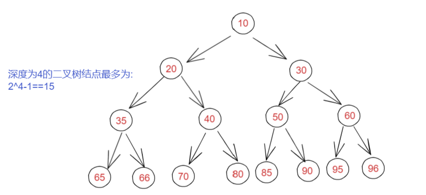 2、深度为K的二叉树最多有 2^k - 1个结点