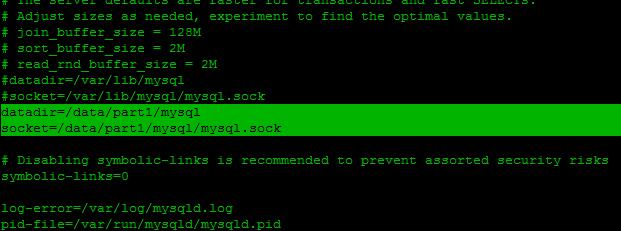 datadir=/data/part1/mysql socket=/data/part1/mysql/mysql.sock
