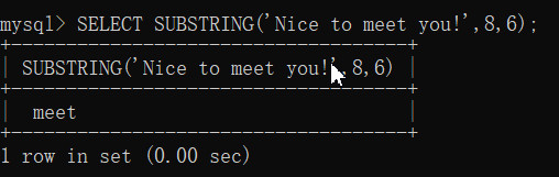 SELECT SUBSTRING('Nice to meet you!',8,6);