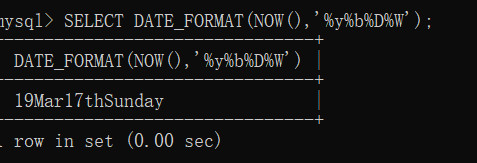 SELECT DATE_FORMAT(NOW(),'%y%b%D%W');