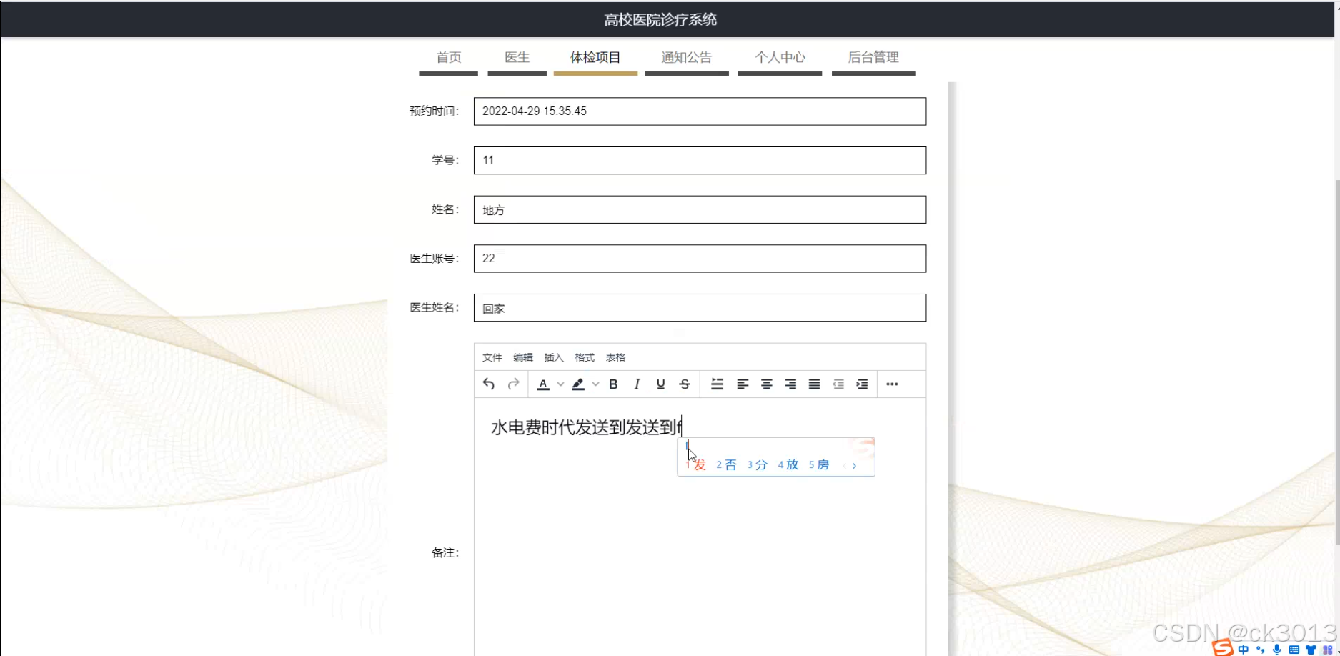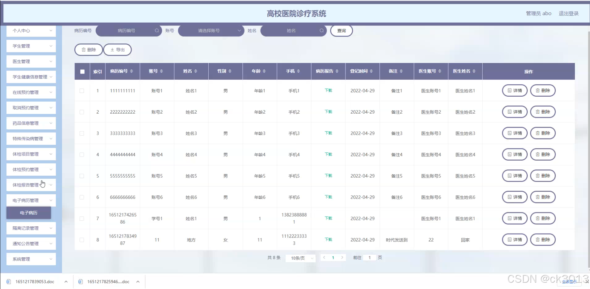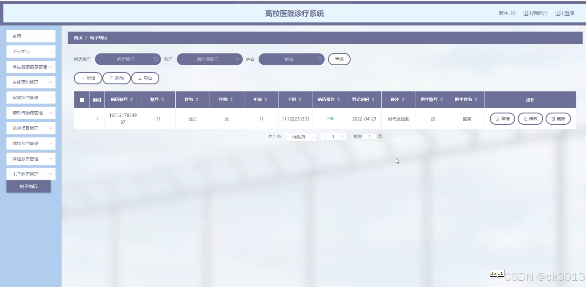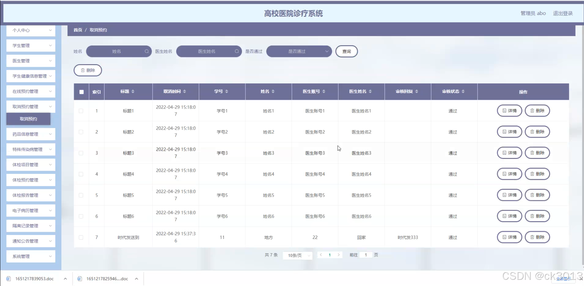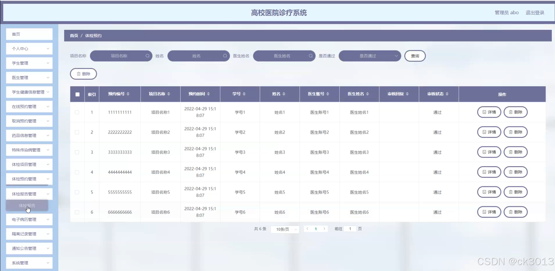 本研究旨在设计并实现一套功能完善、操作便捷的高校医院诊疗系统,以满足高校医院日常诊疗、健康管理和信息服务等多方面需求。通过该系统,学生、教师可以方便地预约体检、查看体检报告和电子病历,医生可以高效地管理患者信息和诊疗记录,医院管理层可以实时掌握医院的运营情况和健康数据。