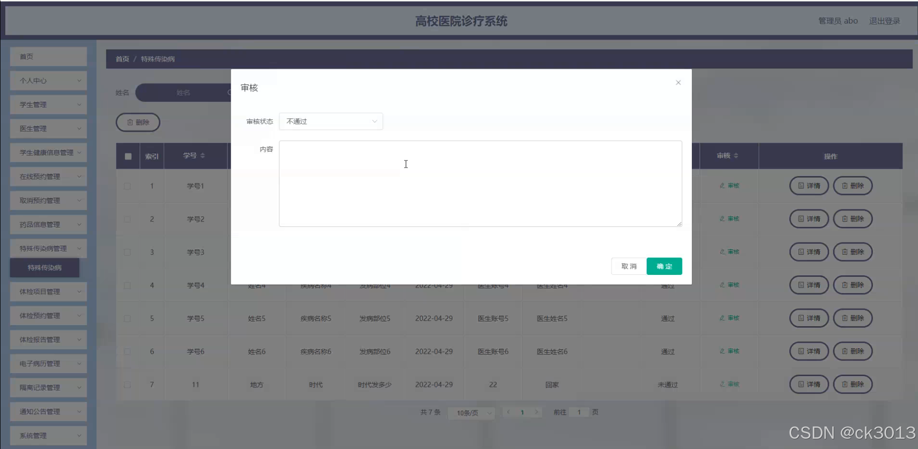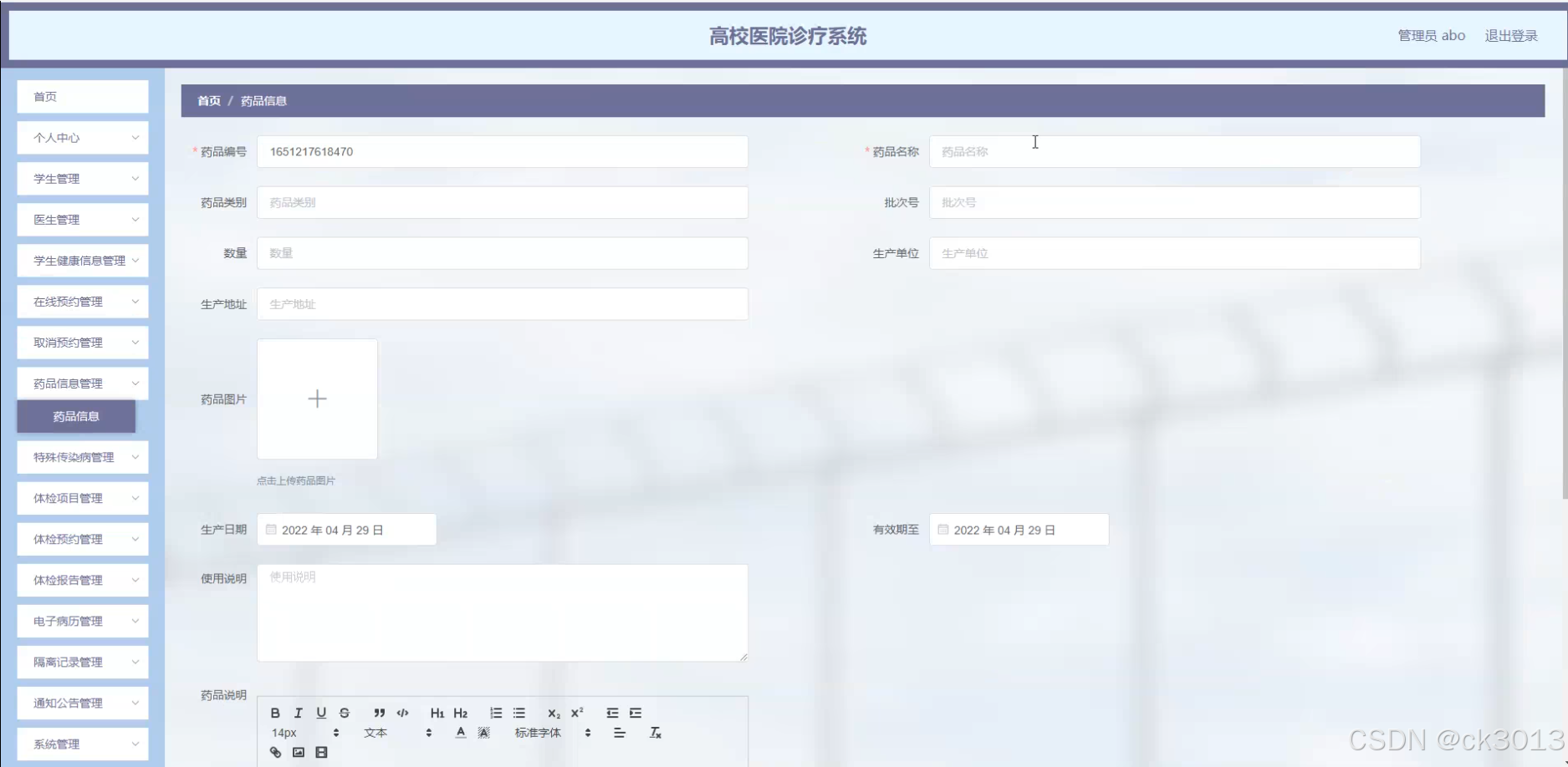 - 系统需求分析:明确系统的功能需求,包括学生信息管理、医生信息管理、药品信息管理、特殊传染病管理、体检项目管理等。