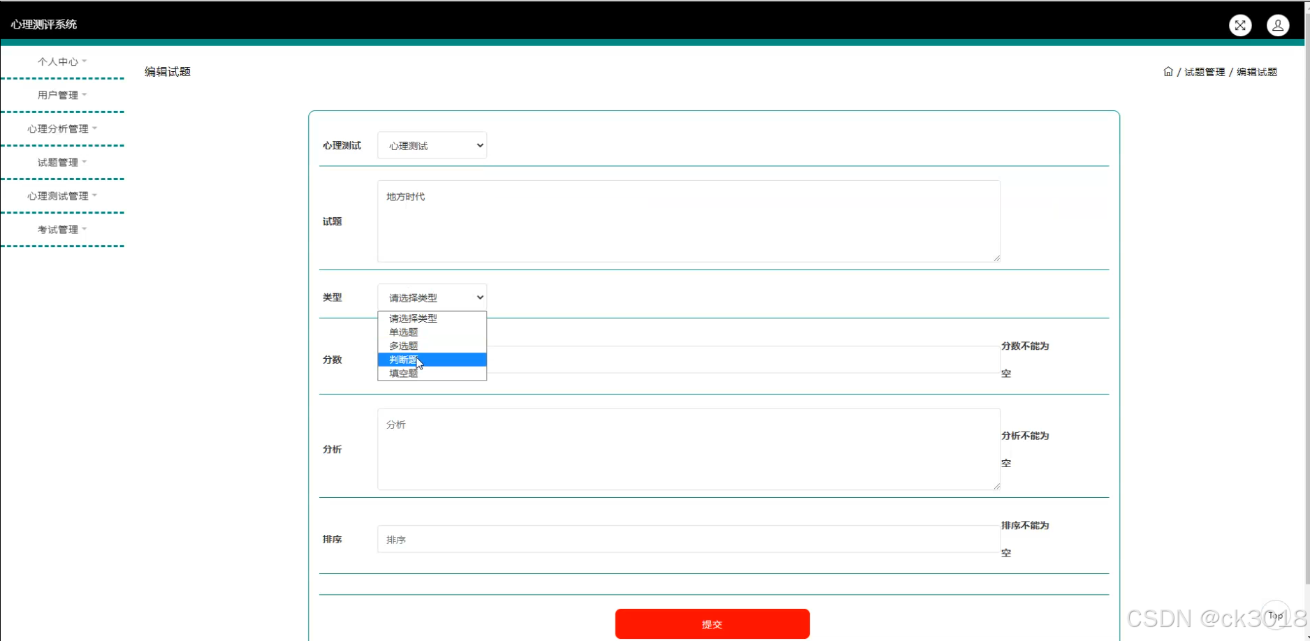 - 集成SCL-90、SAS、EPQ等300+专业量表,覆盖焦虑、抑郁、人格等6大维度;