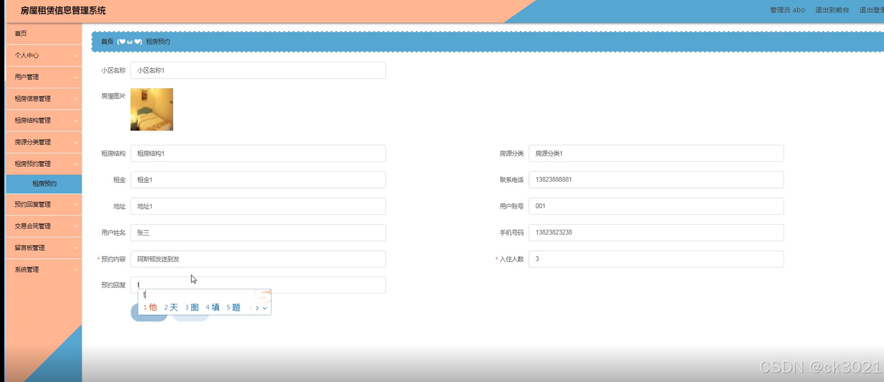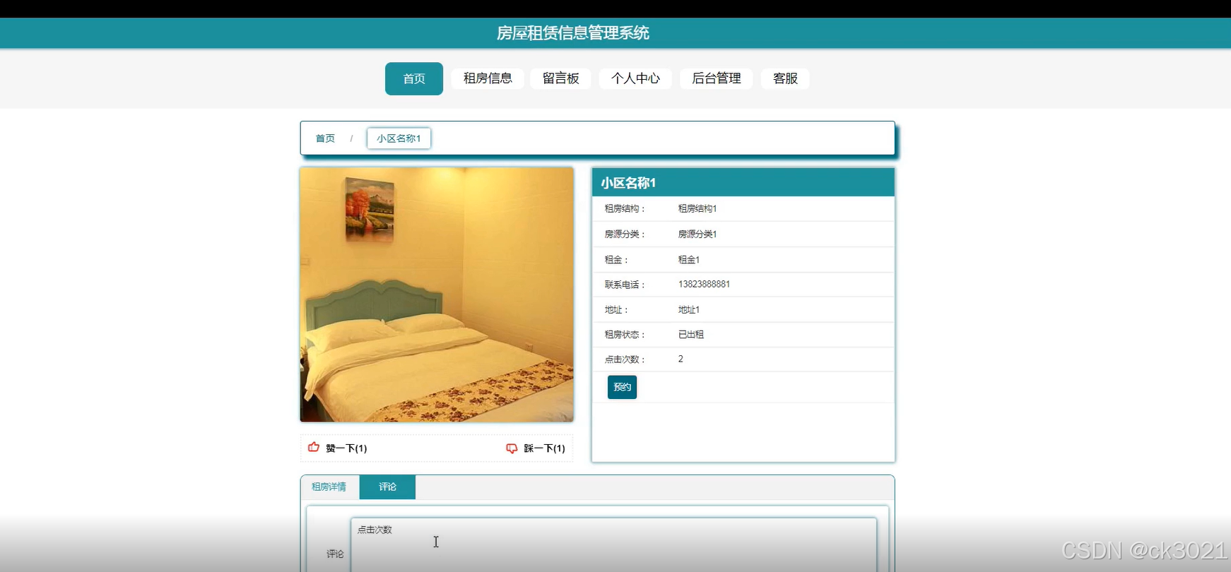 项目功能:用户,租房信息,租房结构,房源分类,租房预约,预约回复,交易合同,提供帮助