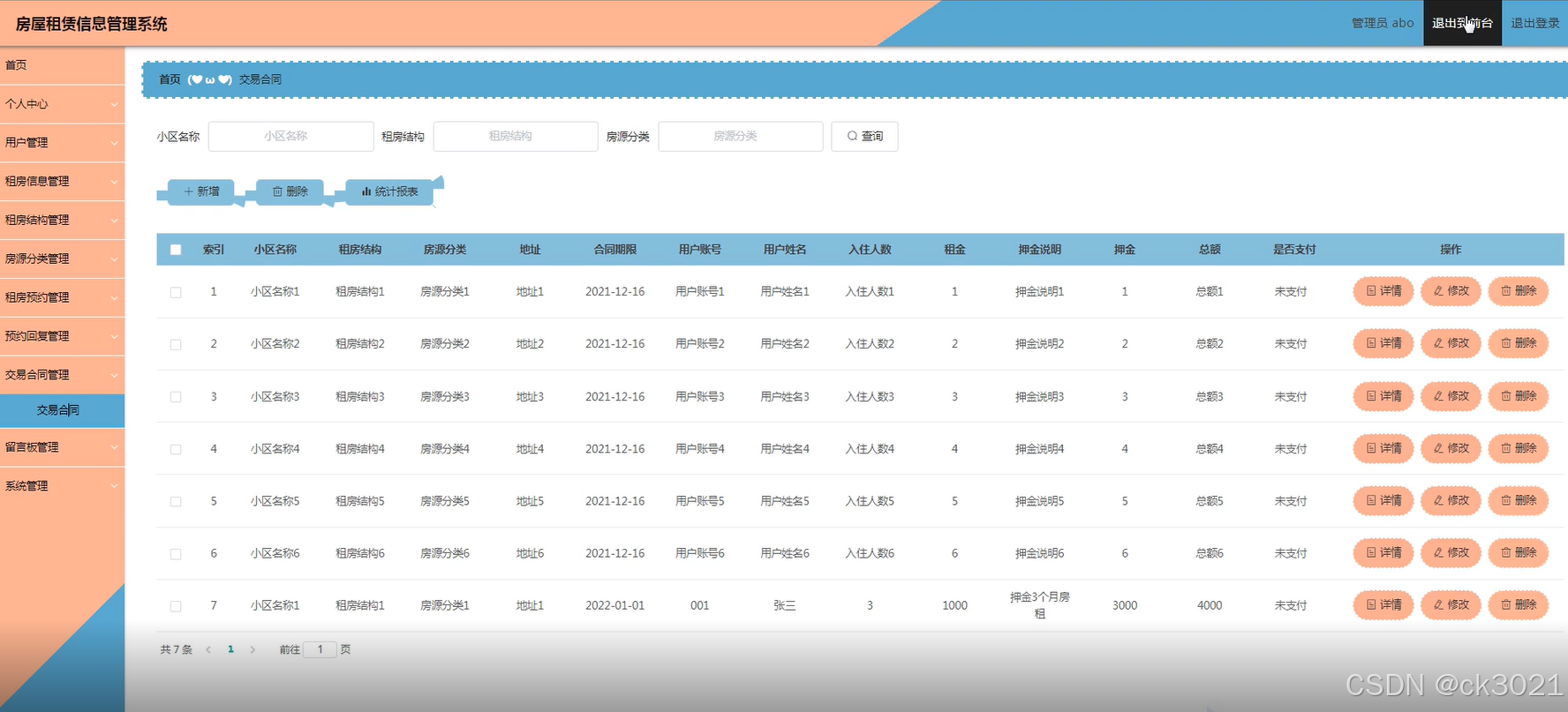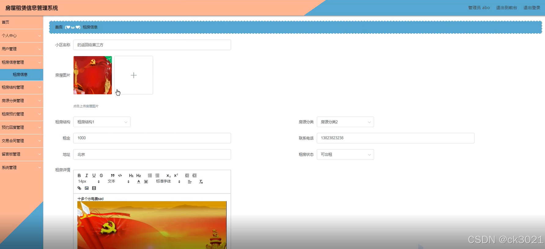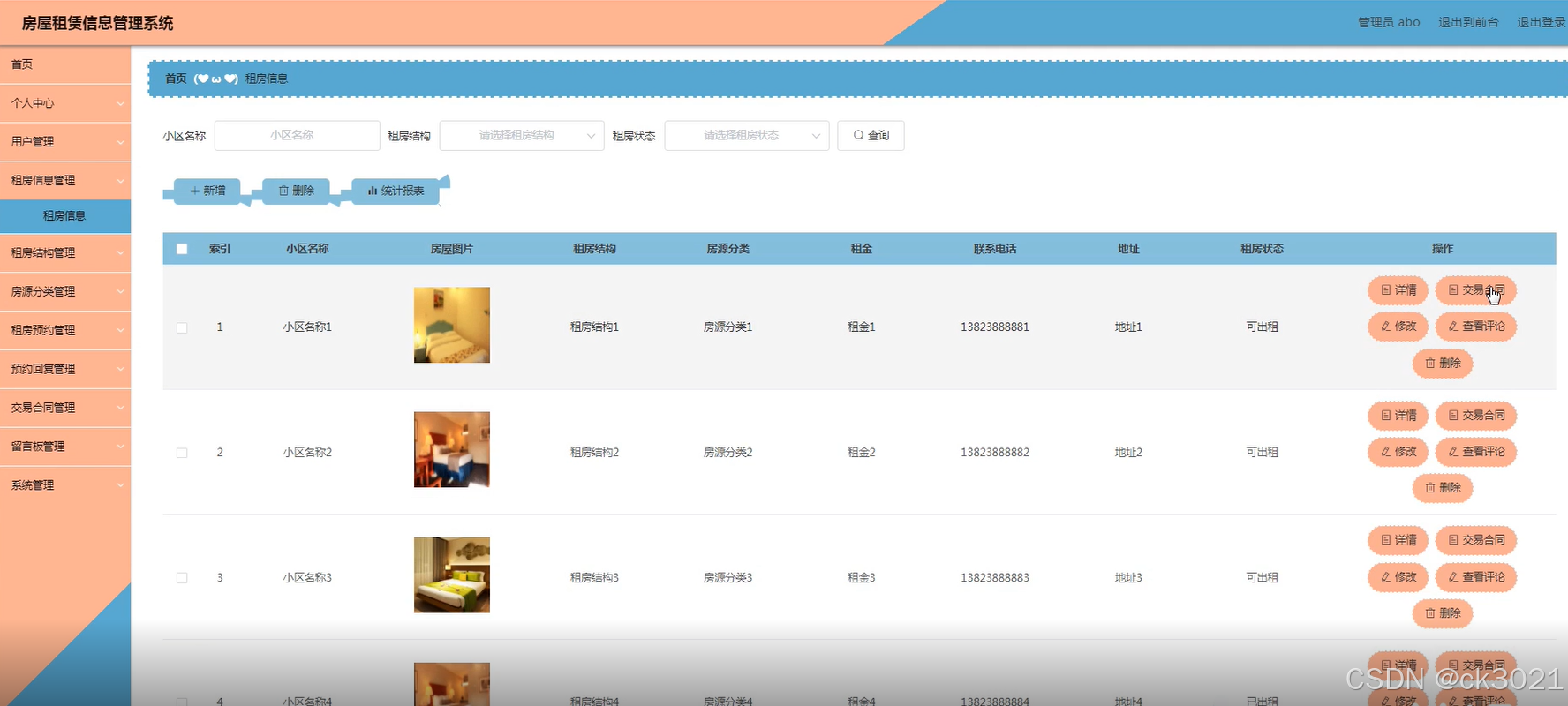 - 支持租户信息管理,包括个人信息、租赁历史、租金支付情况等;