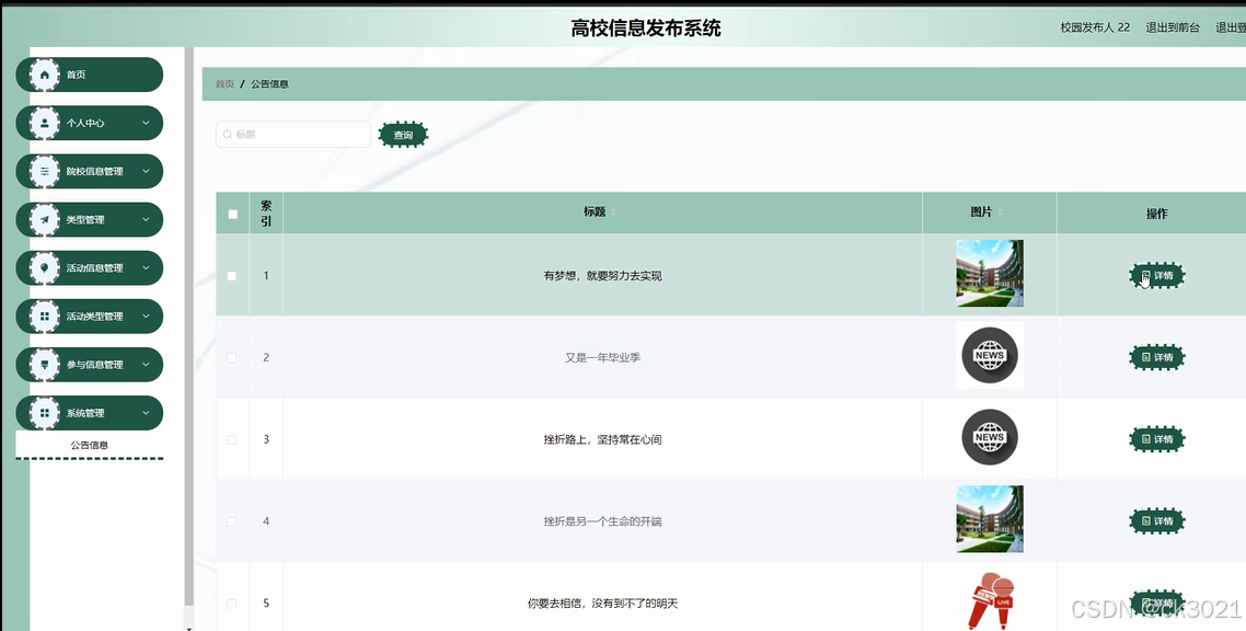 预期成果为一套功能完善、操作简便的高校信息发布系统。该系统将有效提升高校信息传播的效率和质量,为广大师生提供便捷的信息获取途径。同时,该系统也将为其他高校的信息发布系统建设提供有益的参考和借鉴。