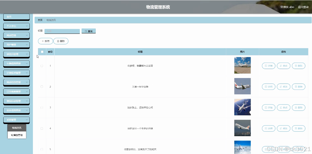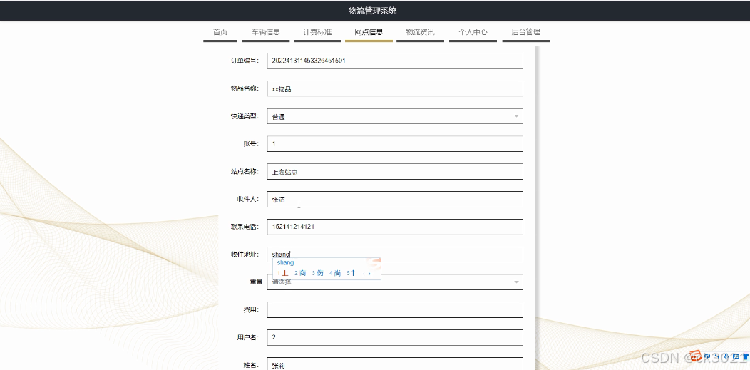 本项目旨在运用 Spring Boot 框架开发一套全面且高效的物流管理系统,深度融合用户、计费标准、网点管理、派送员、网点信息、订单信息、车辆信息、物流信息、投诉信息等关键环节。通过该系统,实现用户便捷获取物流服务信息,物流企业高效运营,全面提升物流管理系统的整体效能与用户、物流企业满意度,推动物流行业高质量发展。