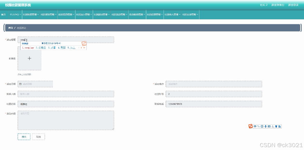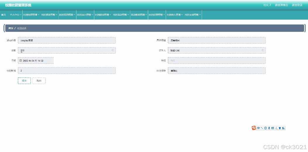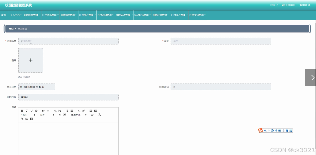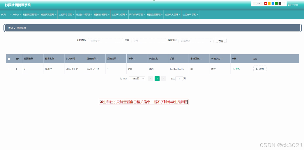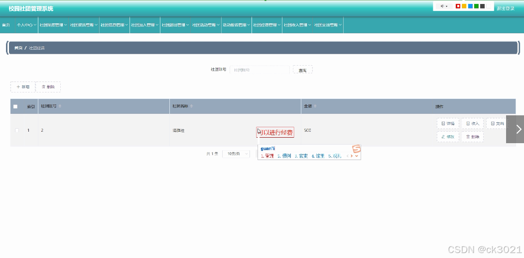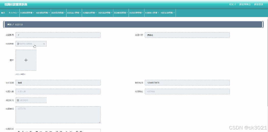 | 学院,学生,社长,社团类别,社团信息,社团加入,社团活动,活动报名,社团退出,社团制度,社团资讯,社团收入,社团支出,社团经费 |