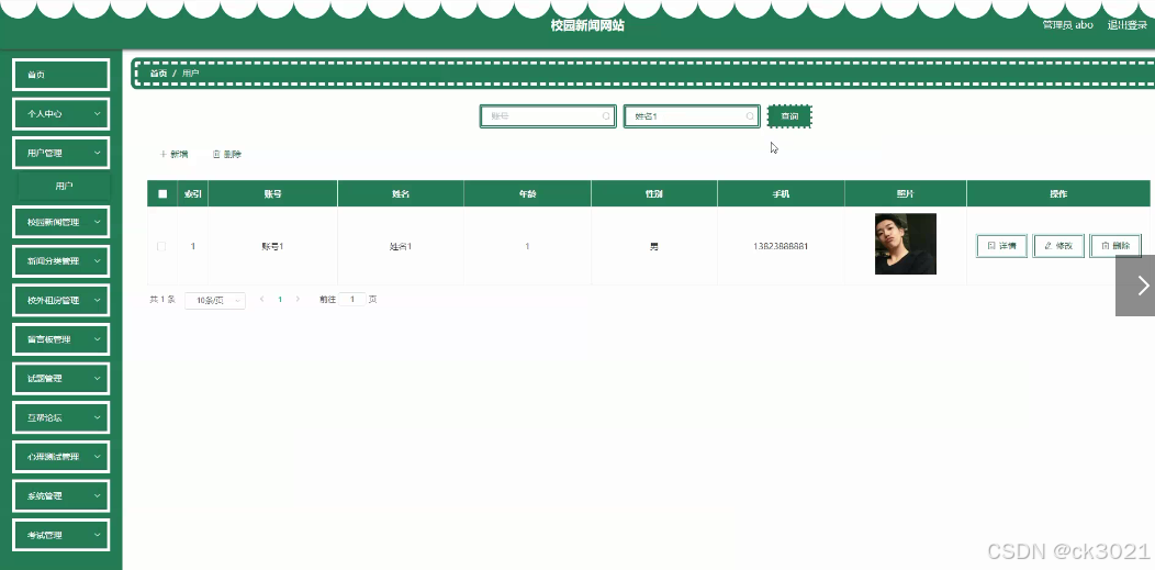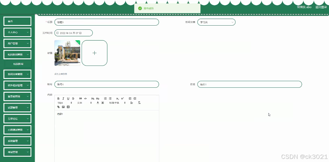 | 用户,校园新闻,新闻分类,校外租房,健康专栏,校园一帮一 |