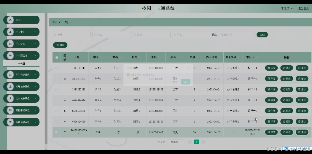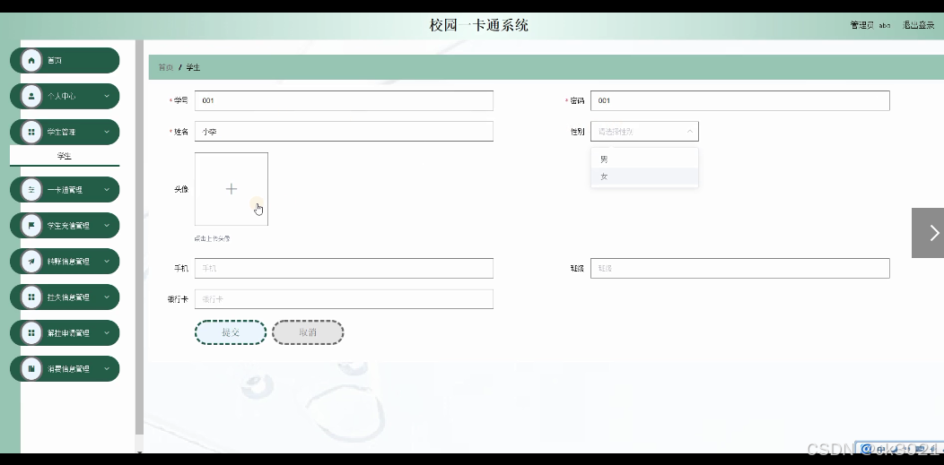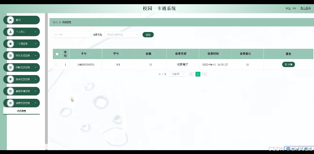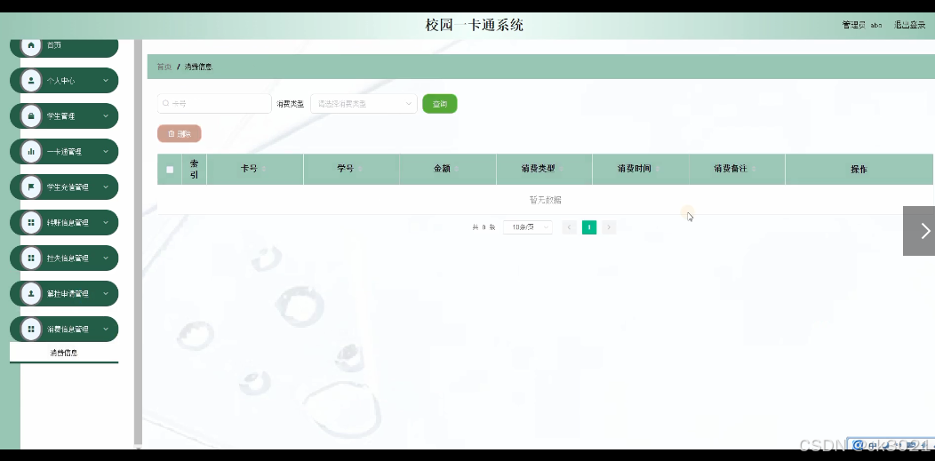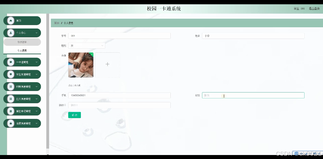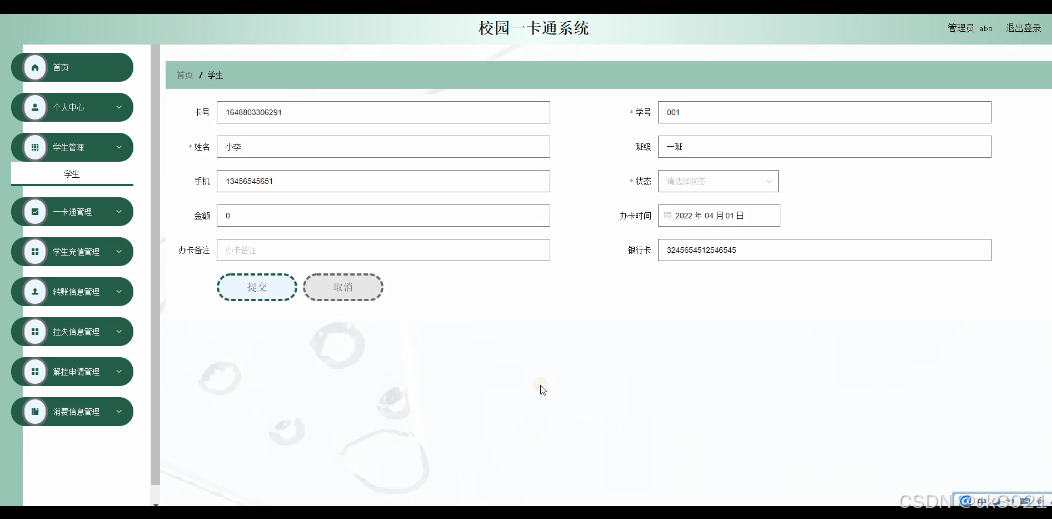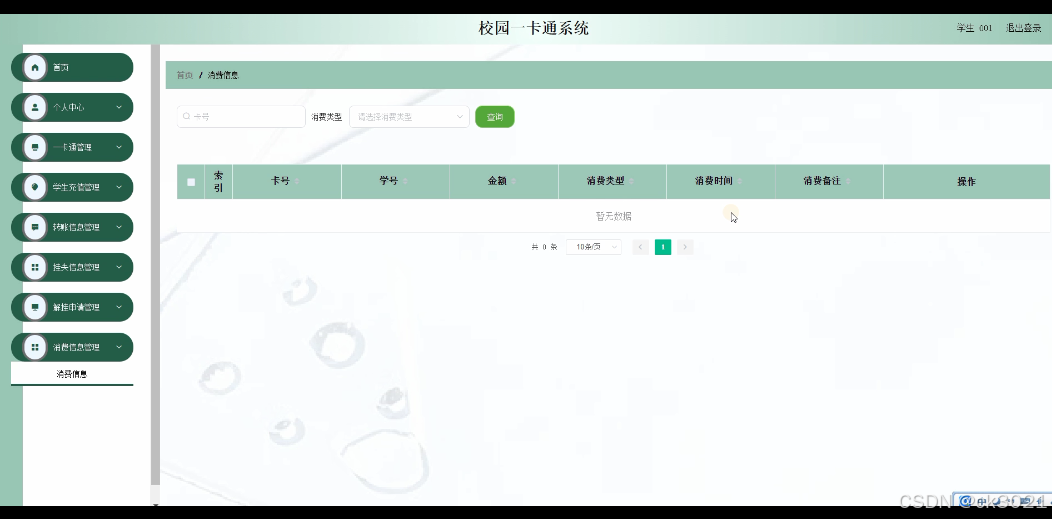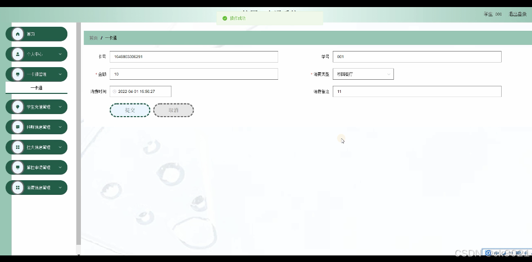 | 学生,一卡通,学生充值,转账信息,挂失信息,解挂申请,消费信息 |