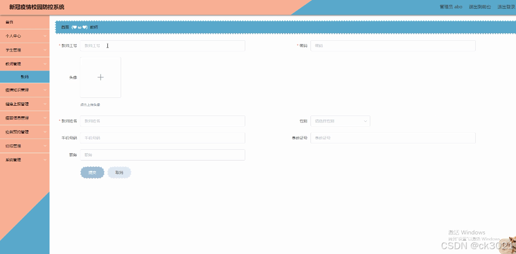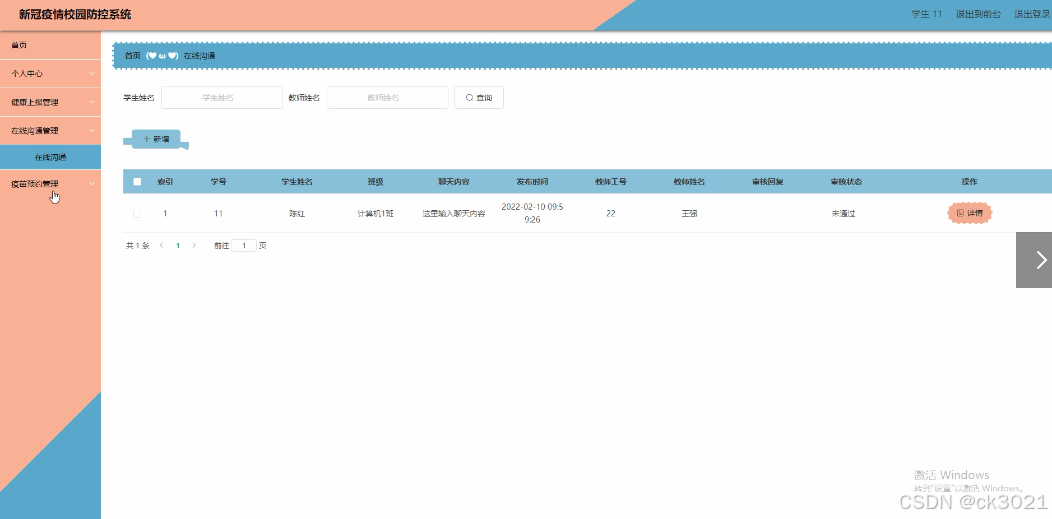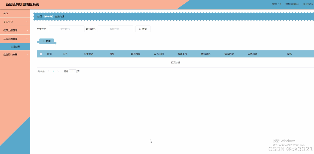 SpringBoot新冠疫情校园防控系统46hqx