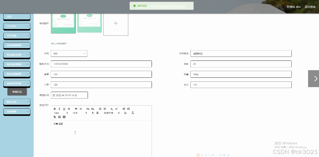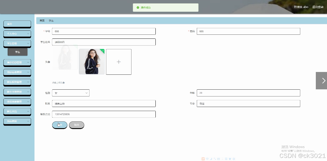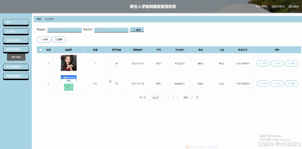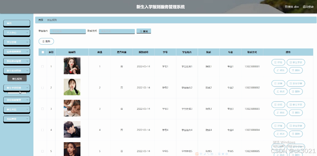 本项目旨在运用 Spring Boot 框架开发一套全面且高效的新生入学报到服务管理系统,深度融合学生、宿舍信息、新生报到、新生学费、体检信息、预定宿舍等关键环节。通过该系统,新生能够便捷获取报到相关信息,在线完成预定宿舍和新生报到流程,查询新生学费和体检信息。学校管理部门能够高效管理新生报到信息,实时掌握新生学费缴纳进度,合理安排宿舍和体检工作,全面提升新生入学报到服务管理系统的整体效能,提高新生入学报到管理的准确性与效率,保障新生入学报到工作的顺利开展。
