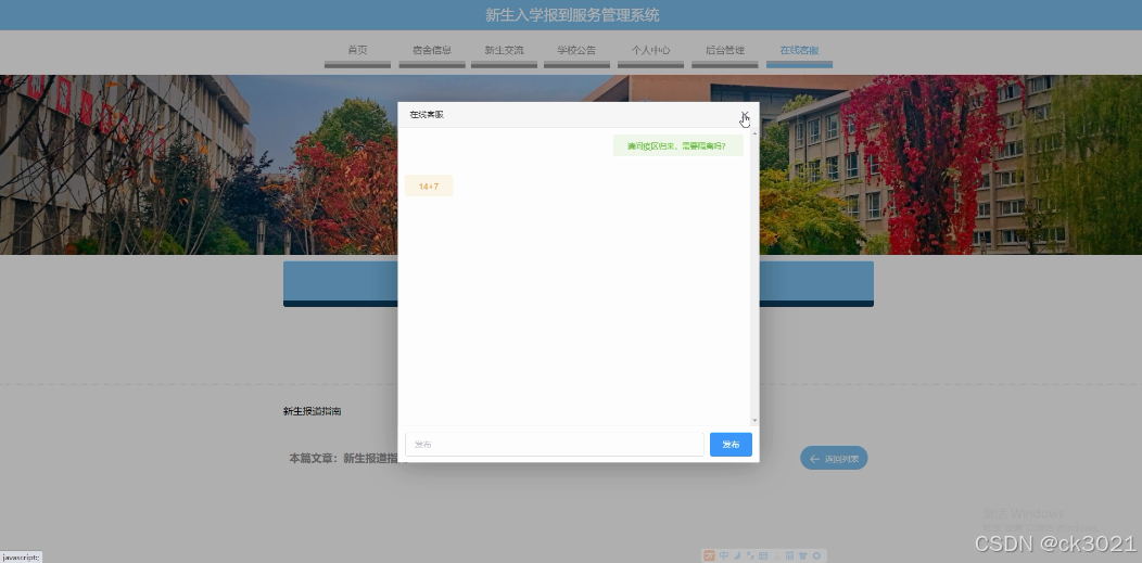 运用 HTML、CSS、JavaScript 结合 Vue.js 前端框架构建简洁友好的用户界面。HTML 负责页面结构搭建,CSS 美化页面样式,JavaScript 实现页面交互逻辑,Vue.js 框架通过组件化开发提高代码复用性与可维护性。设计报到信息查询组件、预定宿舍组件、新生报到组件、学校管理部门管理组件等。采用响应式设计,确保系统在 PC 端、移动端等不同终端设备上均可正常访问与操作,为新生、学校管理部门提供一致使用体验。
