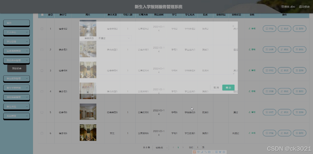 | 学生,宿舍信息,新生报到,新生学费,体检信息,预定宿舍 |