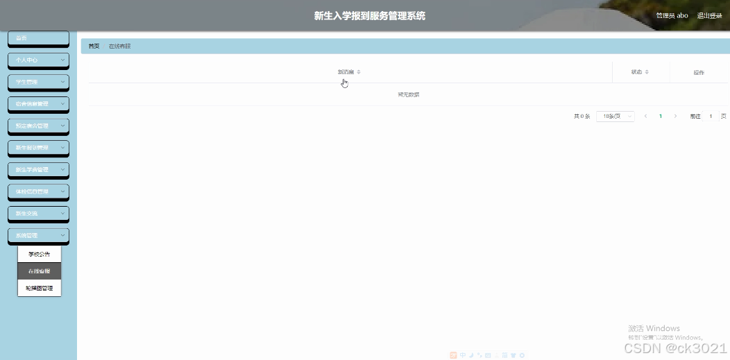 新生入学报到是学生开启校园生活的重要环节,然而,传统新生入学报到服务管理模式存在诸多弊端,难以满足新生和学校的需求,基于 Spring Boot 框架构建新生入学报到服务管理系统迫在眉睫。