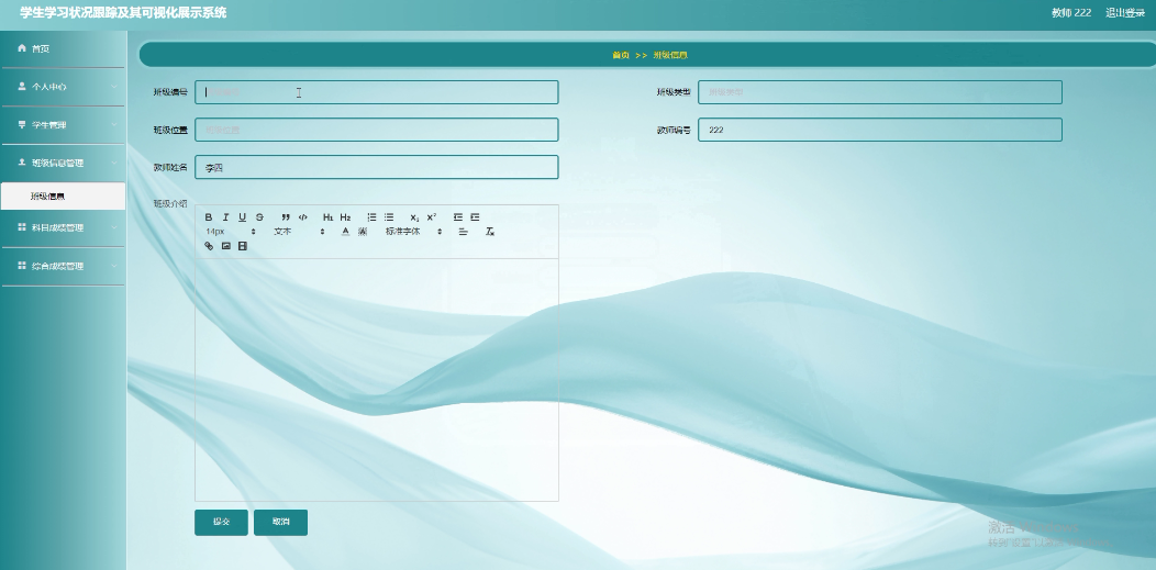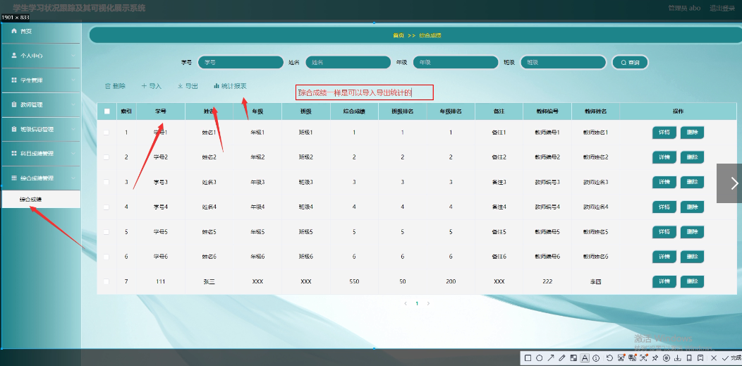 本项目旨在运用 Spring Boot 框架开发一套全面且高效的学生学习状况跟踪及其可视化展示系统,深度融合学生、教师、班级信息、学生成绩等关键环节。通过该系统,学生能够便捷查询自身学习成绩,直观了解学习状况的变化趋势,制定学习提升计划。教师能够高效收集和管理学生成绩,全面跟踪学生学习进度,为学生提供针对性的指导。学校管理者能够实时掌握不同班级、不同学生的学习数据,进行数据分析,为教学资源调配和教学决策提供支持,全面提升学生学习状况跟踪及其可视化展示系统的整体效能,提高学生学习状况管理的准确性与效率,促进学生学习和教学质量的提升。