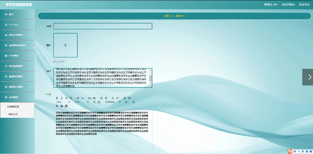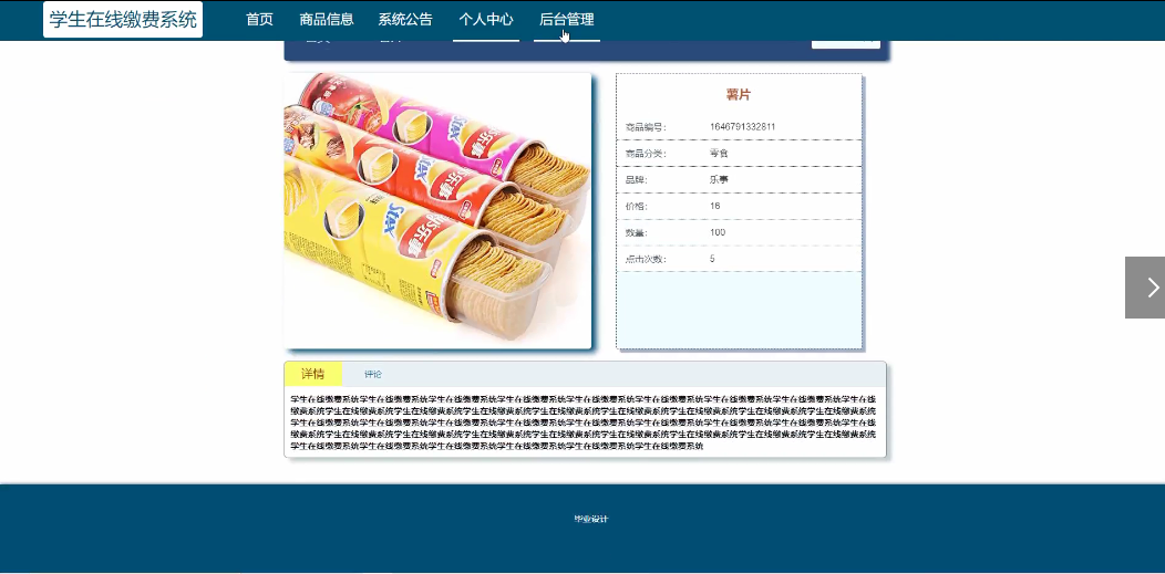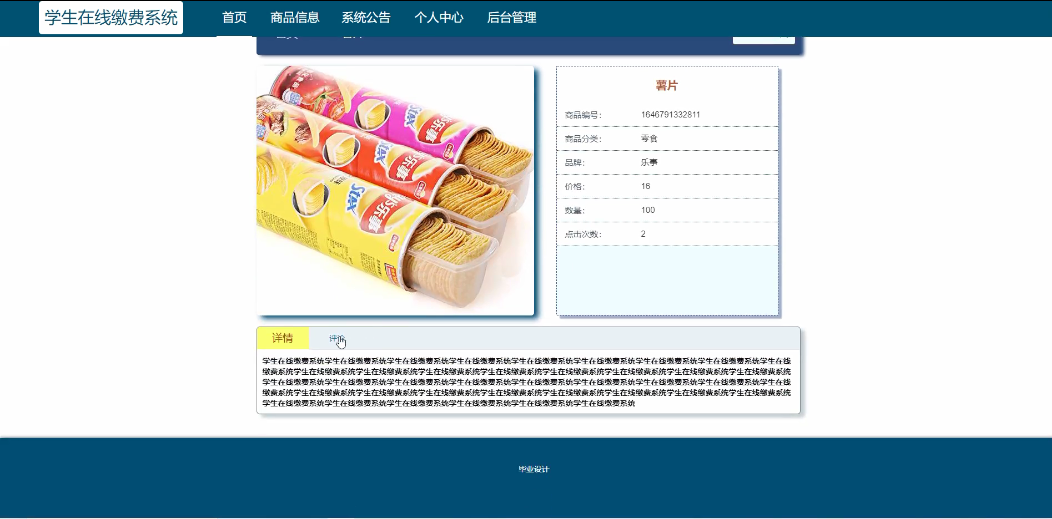 本项目旨在运用 Spring Boot 框架开发一套全面且高效的学生在线缴费系统,深度融合学生、商品信息、商品分类、缴费类型、缴费登记、普通管理员等关键环节。通过该系统,学生能够便捷获取商品信息和缴费类型,在线进行缴费操作,查询缴费登记记录。普通管理员能够高效管理商品信息、商品分类和缴费登记信息,实时掌握学生的缴费情况,处理学生缴费问题。学校管理者能够全面掌握缴费数据,进行数据分析,为财务决策和资源调配提供支持,全面提升学生在线缴费系统的整体效能,提高学生缴费管理的准确性与效率,保障学校财务工作的顺利开展。