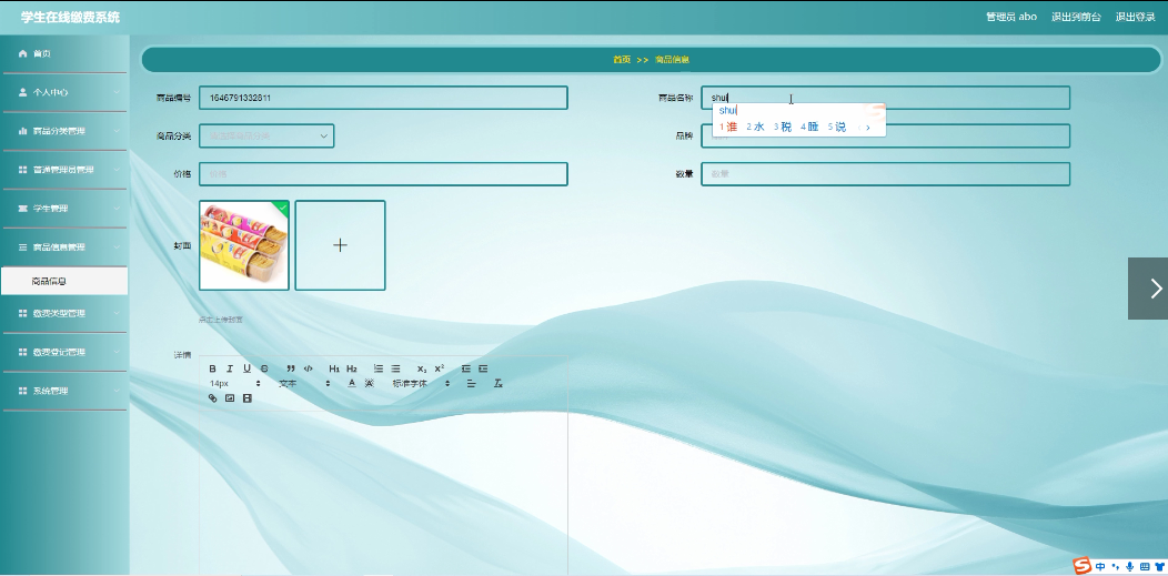 普通管理员利用该系统,实现商品信息和缴费登记信息的信息化管理,实时掌握学生缴费动态,合理安排工作,提高工作效率与质量,更好地履行管理职责。