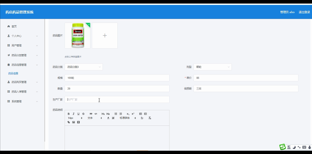 对于药店工作人员而言,管理药品信息和分类时,依赖人工记录和整理,不仅效率低下,且容易出现信息错误和遗漏。在进行药品入库操作时,流程繁琐,需要人工核对大量信息,耗费大量时间和精力。同时,难以实时掌握药品库存情况,无法及时补货,影响药店正常运营。