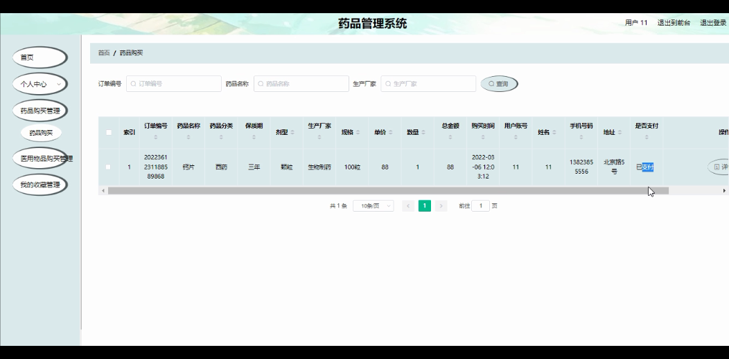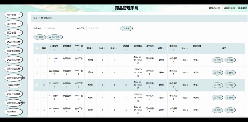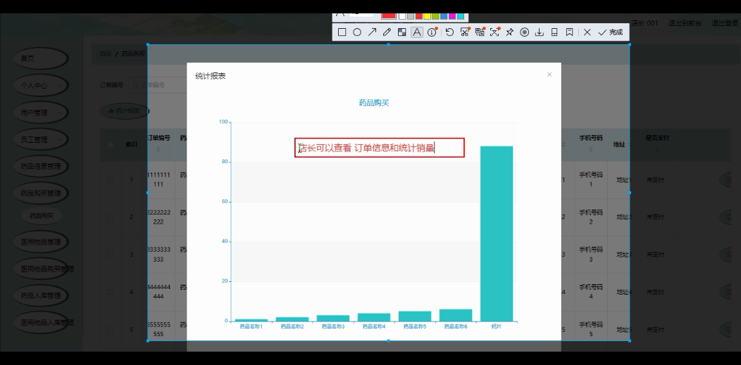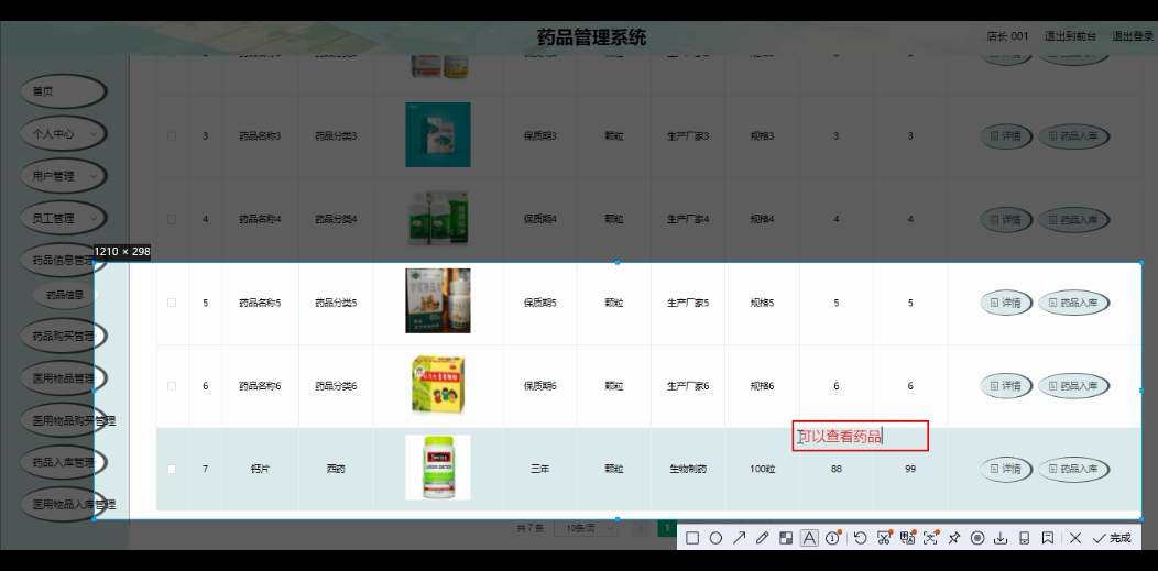 | 用户,店长,员工,药品分类,药品信息,药品购买,医用物品,医用物品购买,药品入库,医用物品入库 |