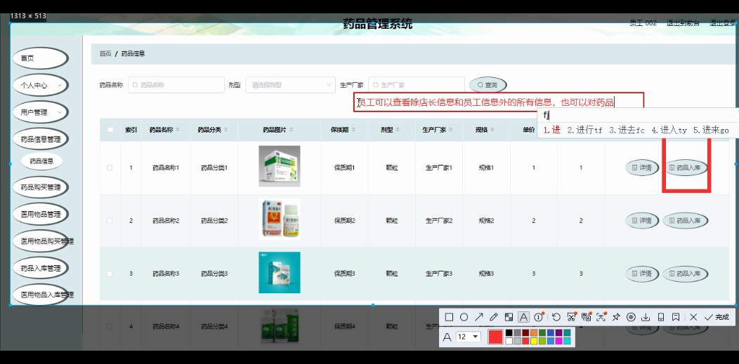 对于员工而言,日常工作面临重重挑战。管理药品和医用物品信息时,依赖手工记录,不仅效率低下,而且容易出现信息错误或遗漏。在处理药品和医用物品的入库流程时,需人工核对大量信息,操作繁琐,耗时费力。此外,在协助用户进行药品和医用物品购买时,缺乏便捷的工具,影响服务效率。