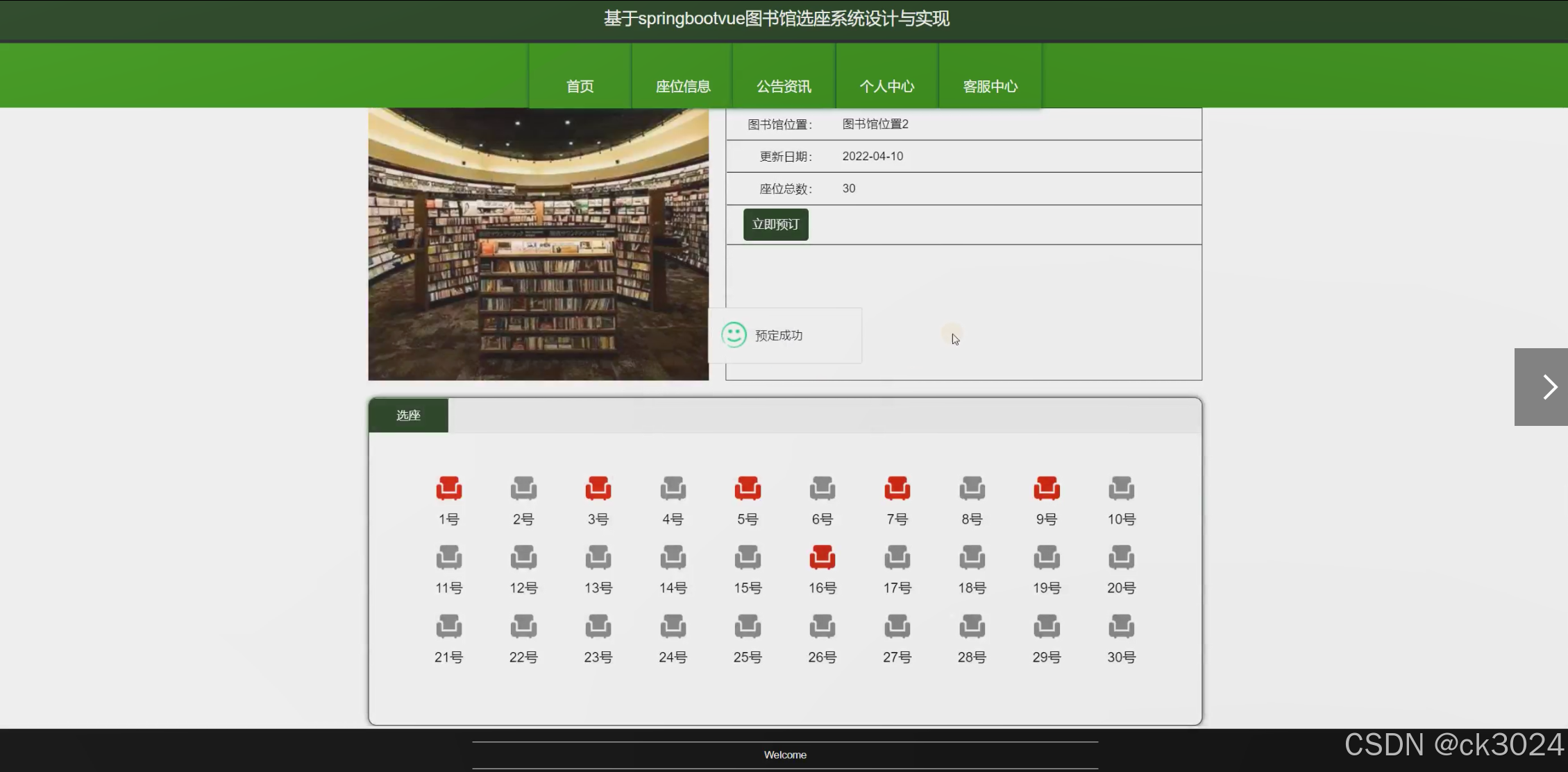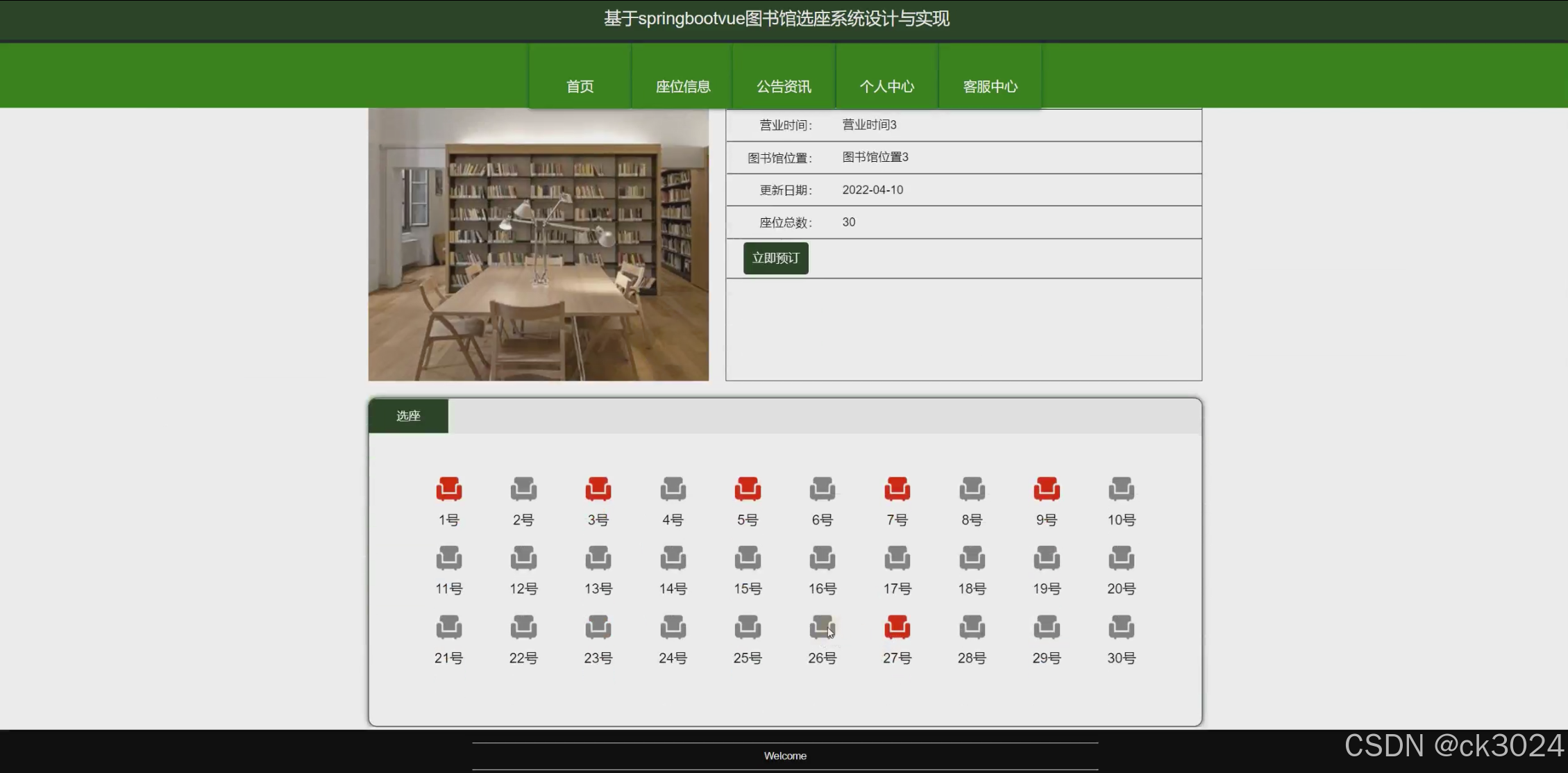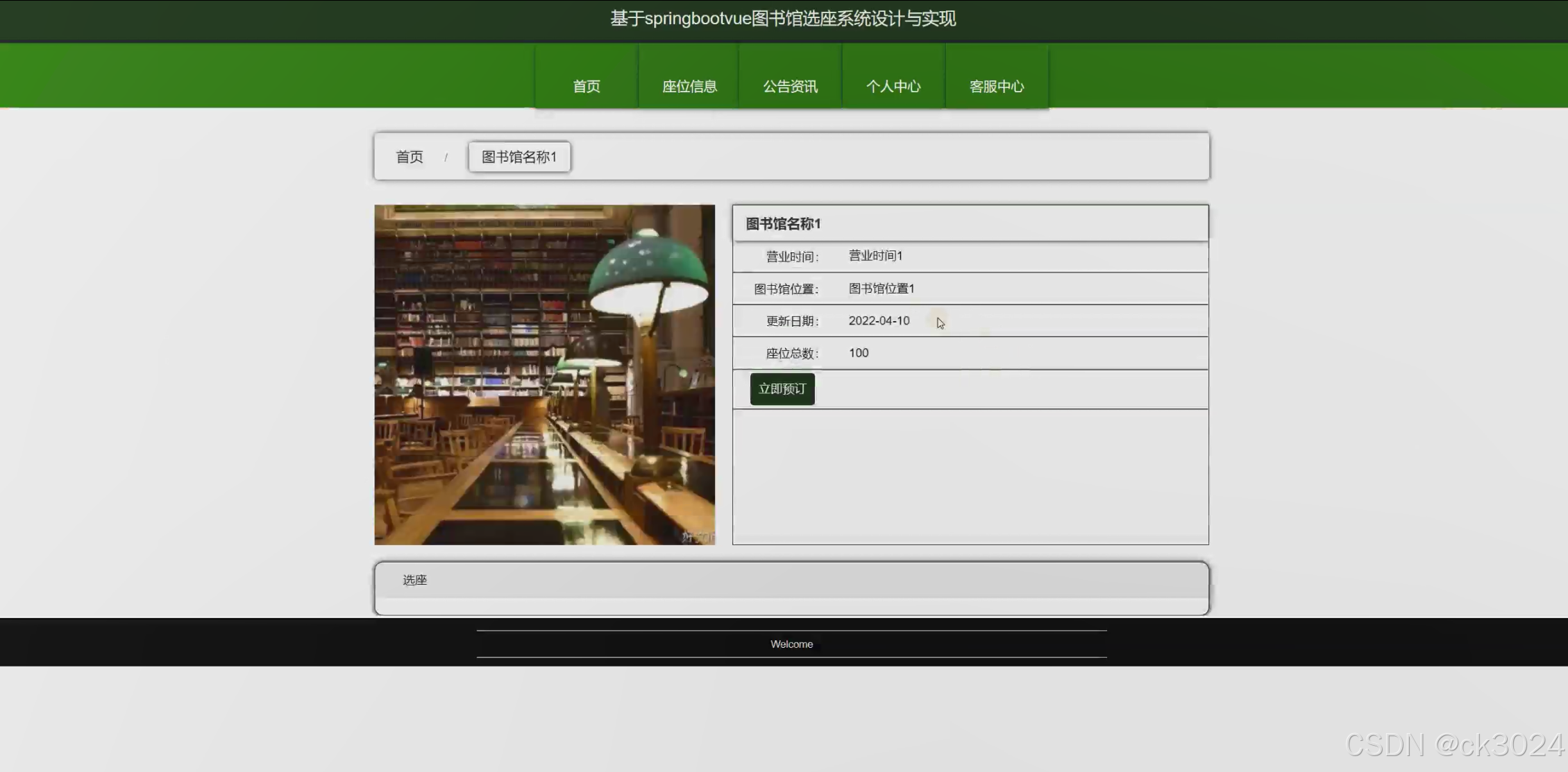 Springboot基于springbootvue图书馆选座系统设计与实现41bpt